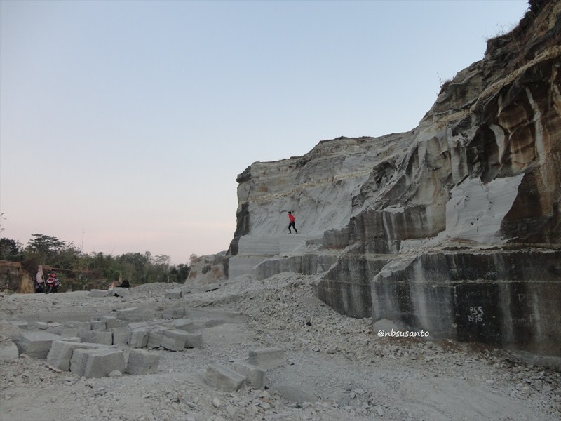 Larangan pemerintah, ternyata tak memutus kreativitas warga. Melihat tebing bekas penambangan, warga sekitar punya ide lain. Ide muncul, tatkala melihat bekas-bekas galian meninggalkan gurat-gurat yang indah. Perpaduan warga putih berkilau semburat kuning dan coklat dalam bidang tebing yang begitu luas, memberikan panoramic yang menarik